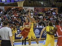 Sredi 12. minute je Stephen Holt s svojo drugo trojko naskok domačega moštva prvič povišal preko meje desetih točk (27:16). Tržačani, ki so se v minuli sezoni uspeli prebiti v končnico kakovostnega italijanskega državnega prvenstva, se niso predali in pet minut kasneje zaostanek znižali na minus štiri (27:31). Njihov nalet je zajezila hitra minuta odmora Jurice Golemca, ekipi pa sta nato na glavni odmor odšli z enako razliko (37:33).